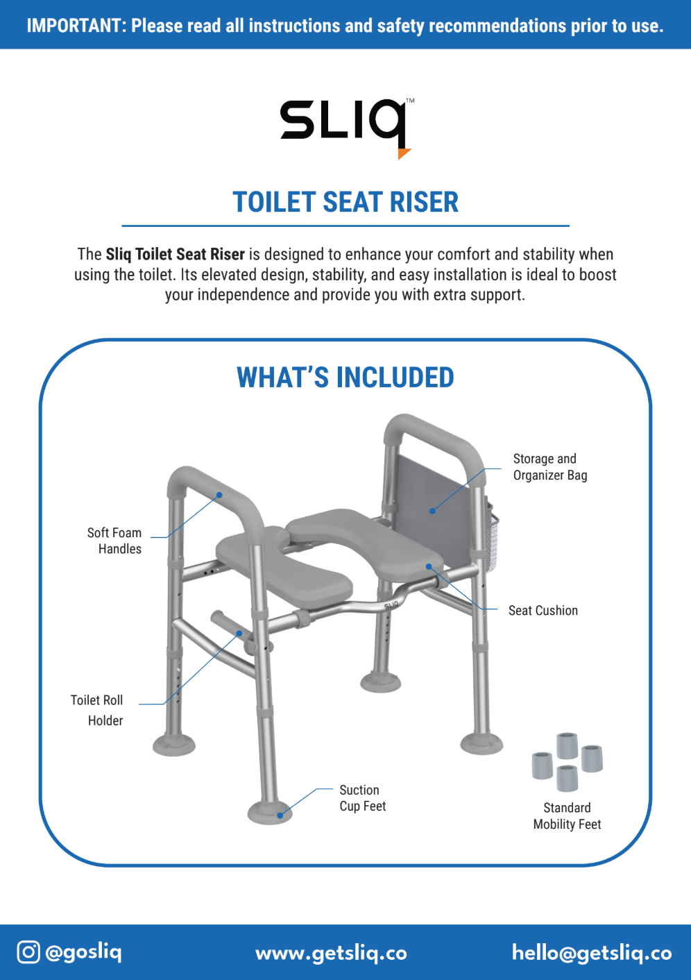 Thank you for purchasing the Sliq Toilet Seat Riser. We're here to help make sure you have the best experience with your product.